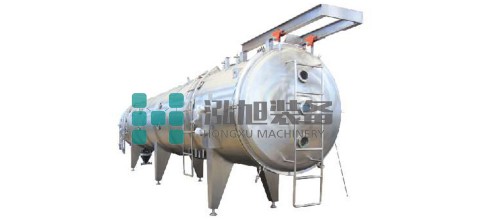 在高真空条件下,物料经布料机连续均匀地涂布在移动履带上,形成薄薄一层料膜,履带先进入加热段,进行低温加热,根据物料特性温度可控制在40°C—180°C,物料中的水份很快由鼓泡而闪蒸被真空提走;物料再进入冷却段,经冰水急冷,使物料变脆,最后由刮刀收集,自动控制出料,所得产品是原色原味的、松脆的颗粒、成过程连续自动化生产,是中药浸膏、麦精、淀粉糖、植物提取液等生产的理想设备。